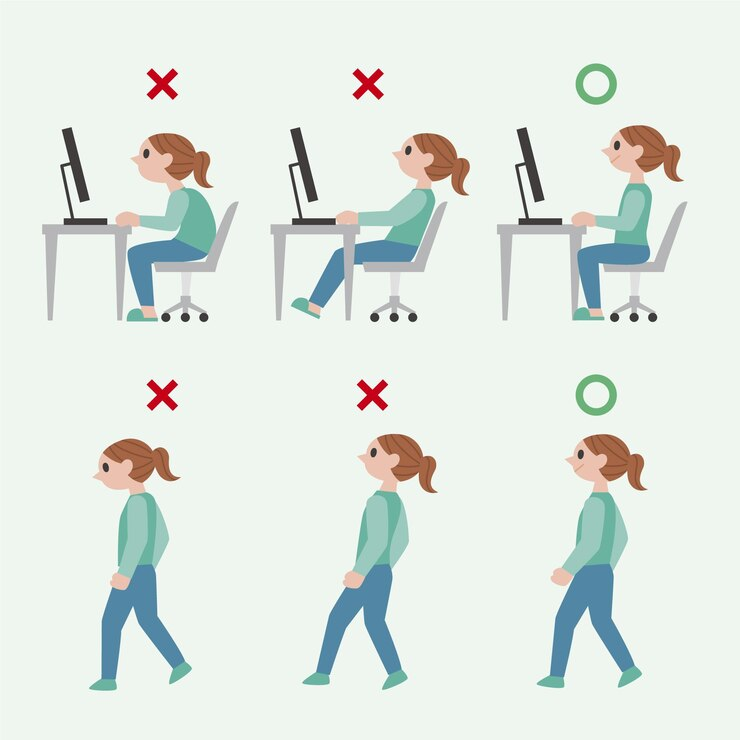 Duy trì các tư thế sai trong một thời gian dài có thể dẫn đến hiện tượng căng cơ, gân ở vùng cổ vai gáy, chẳng hạn như: